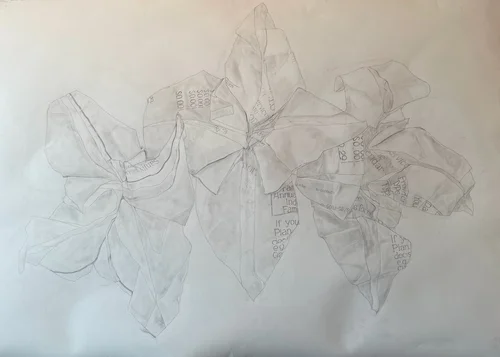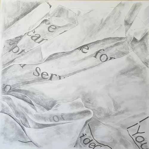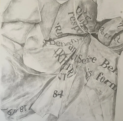 Amber Dye is an artist whose work deals with grief, loss, and identity. With the exception of the few years following the death of her mother, she has been drawing since she was old enough to hold a crayon. During that time, she made a lot of quilts. She also paints, makes clothes, and is a printmaker.